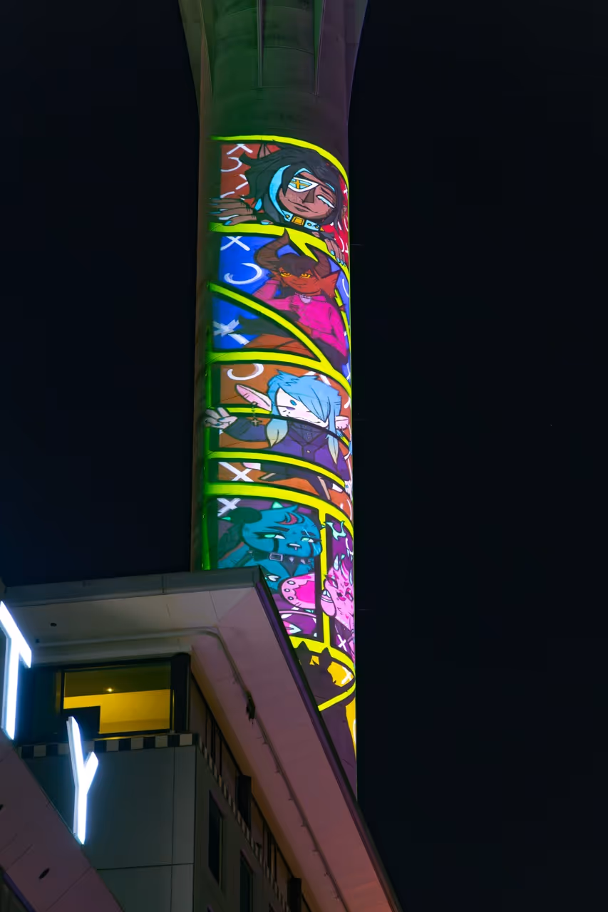 As part of SkyCity Winter Fest 2025, the Sky Tower transformed into Aotearoa’s tallest canvas, showcasing powerful artworks by rangatahi from across the country. In collaboration with Te Kāhui and the SkyCity Community Trust, these young artists lit up the skyline every Friday to Sunday throughout the beginning of August 2025. Cuetone was proud to capture the stories behind the art - speaking with the creators about the meaning behind their work, the kaupapa that drives them, and what it means to have their voices seen by the entire city.